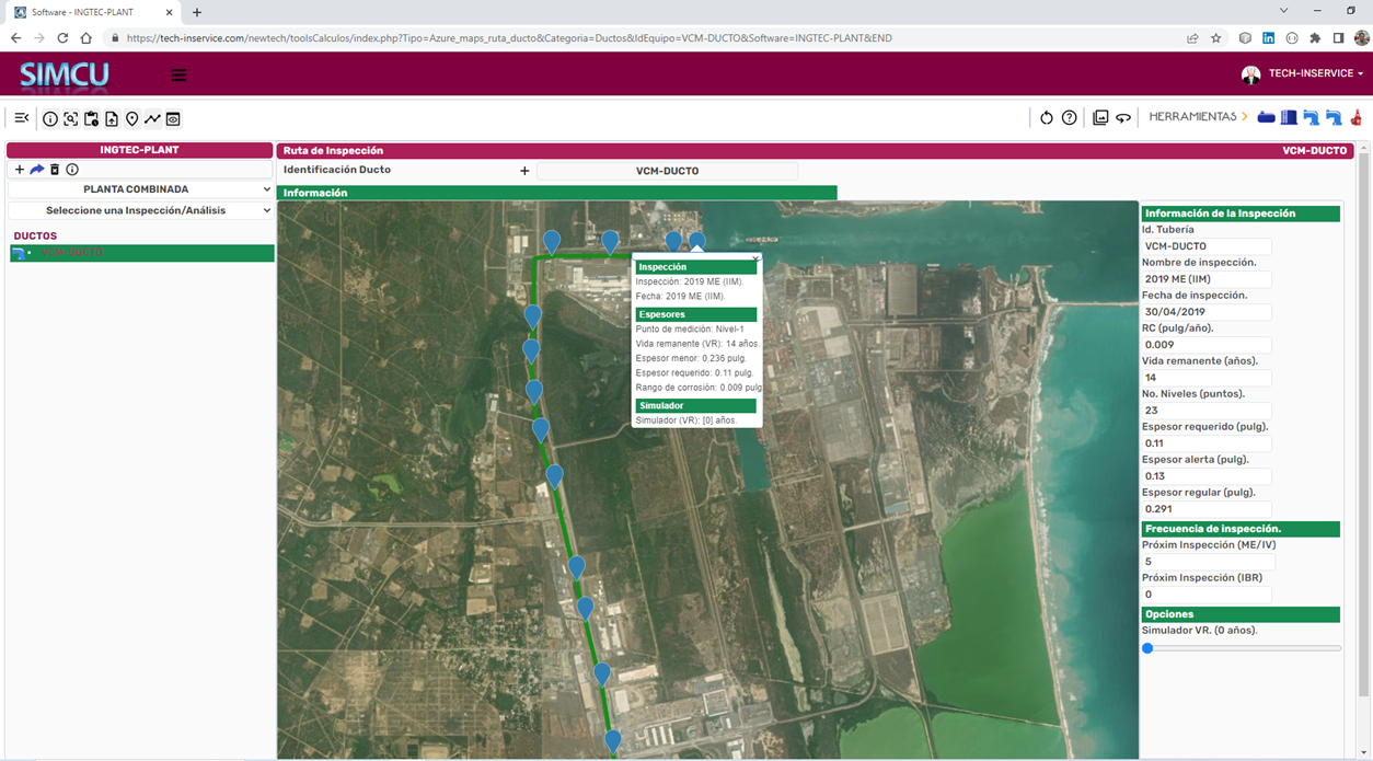 - Licencia de software SIMCU CLOUD con la información entregada, Análisis de rango por corrosión y vida remanente